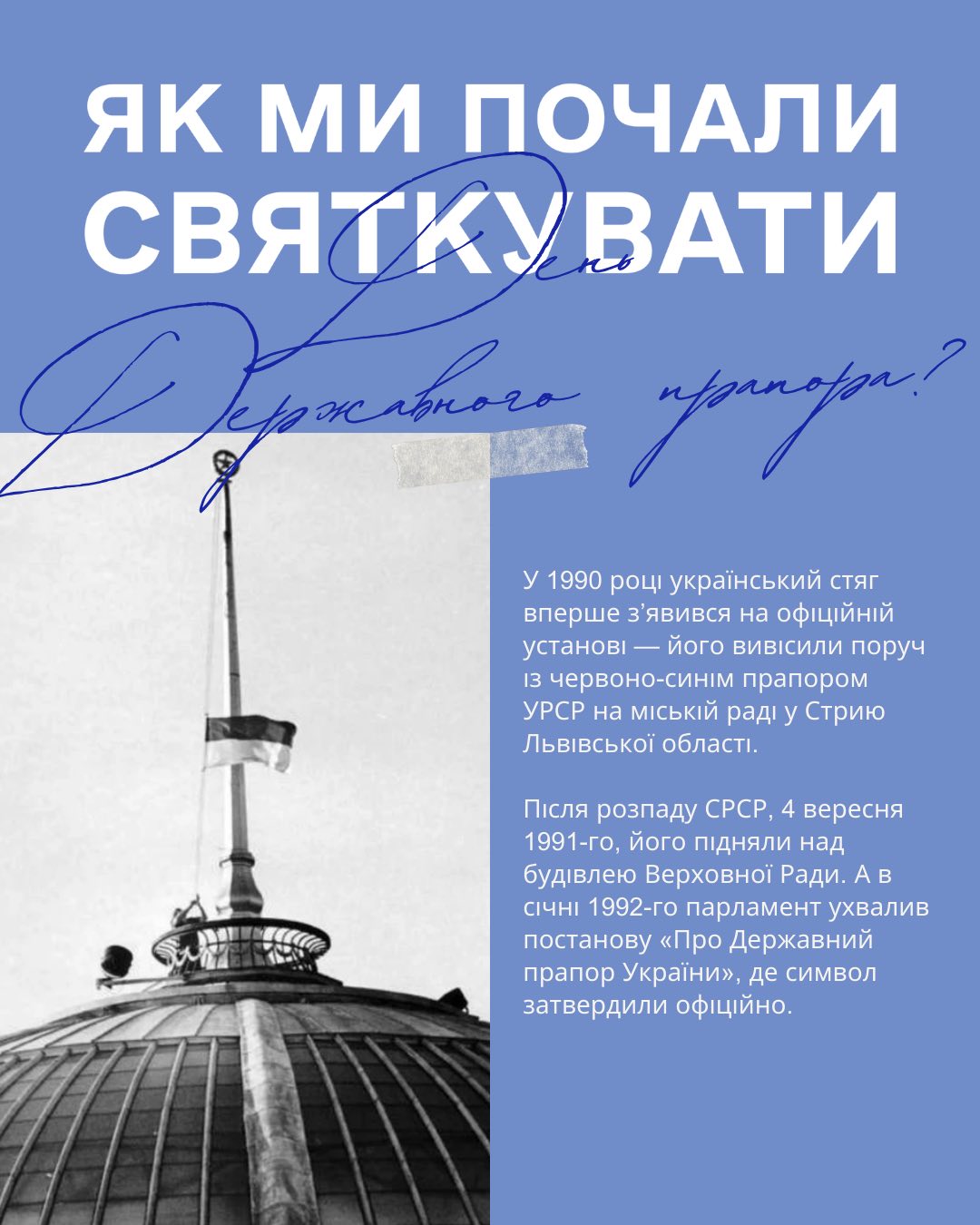 Сьогодні синьо-жовтий стяг майорить на будівлях, у вікнах, на вулицях і в серцях мільйонів українців. Він об’єднує нас у минулому й сьогоденні та нагадує, що разом ми сильніші.