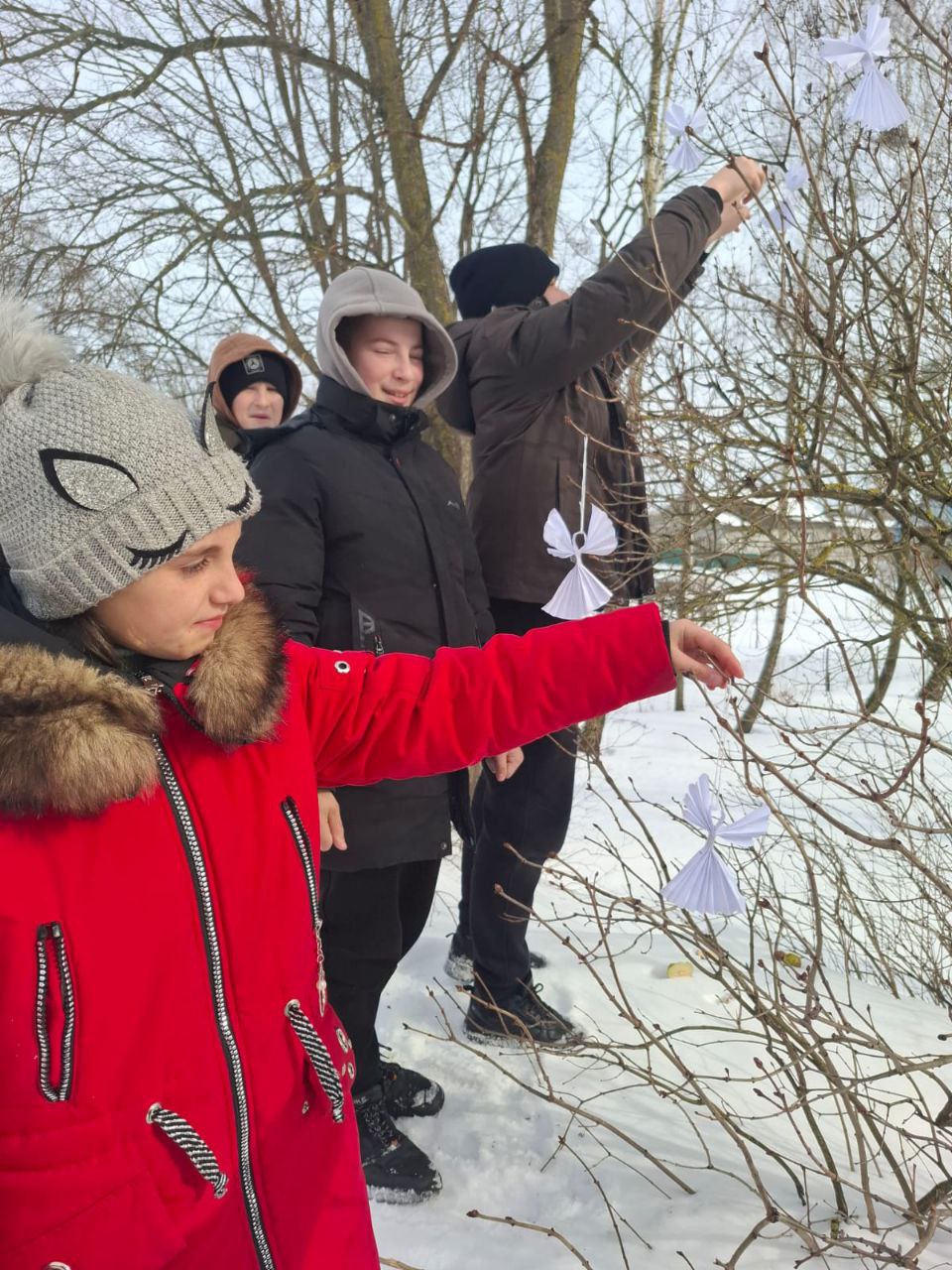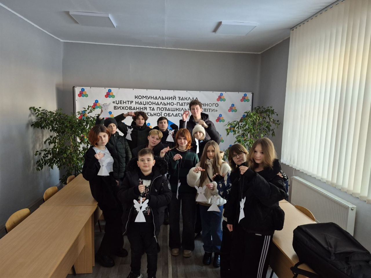 Сьогодні дерева у містах і селах нашого краю «розквітли» білими паперовими ангелами. Вихованці гуртків КЗ «Центр національно-патріотичного виховання та позашкільної освіти» РОР з усієї Рівненської області, долучилися до Всесвітньої тихої акції «Ангели пам’яті» – щорічної ініціативи з вшанування пам’яті Героїв Небесної Сотні та всіх борців за волю України.