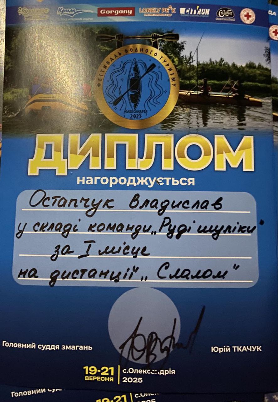 🏆 І місце у складі команди “Витирани” на дистанції “Слалом” (дорослі),