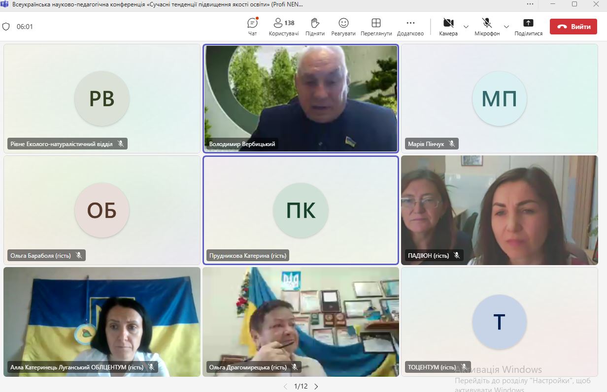 Педагогічні працівники еколого – натуралістичного відділу комунального закладу «Центр національно-патріотичного виховання та позашкільної освіти Рівненської обласної ради долучилися до роботи конференції в онлайн-форматі, брали участь в обговореннях.