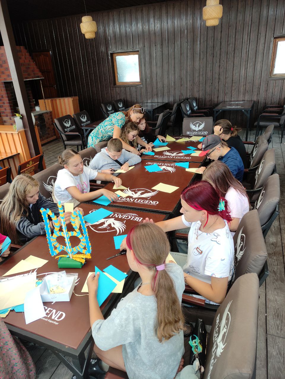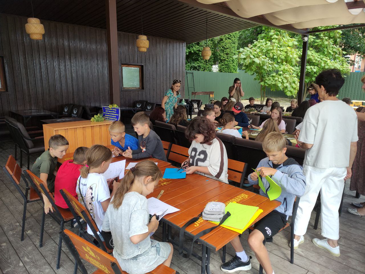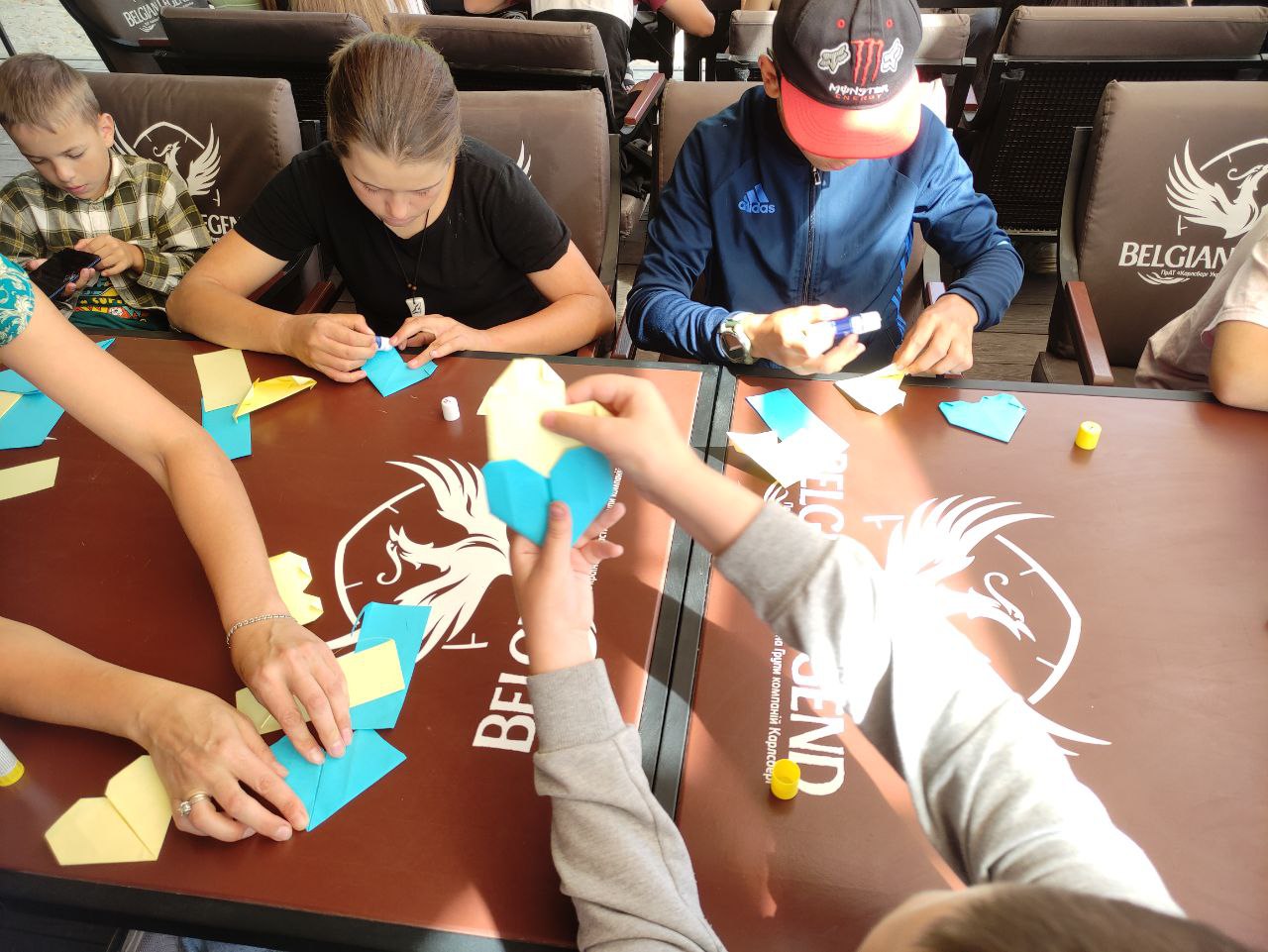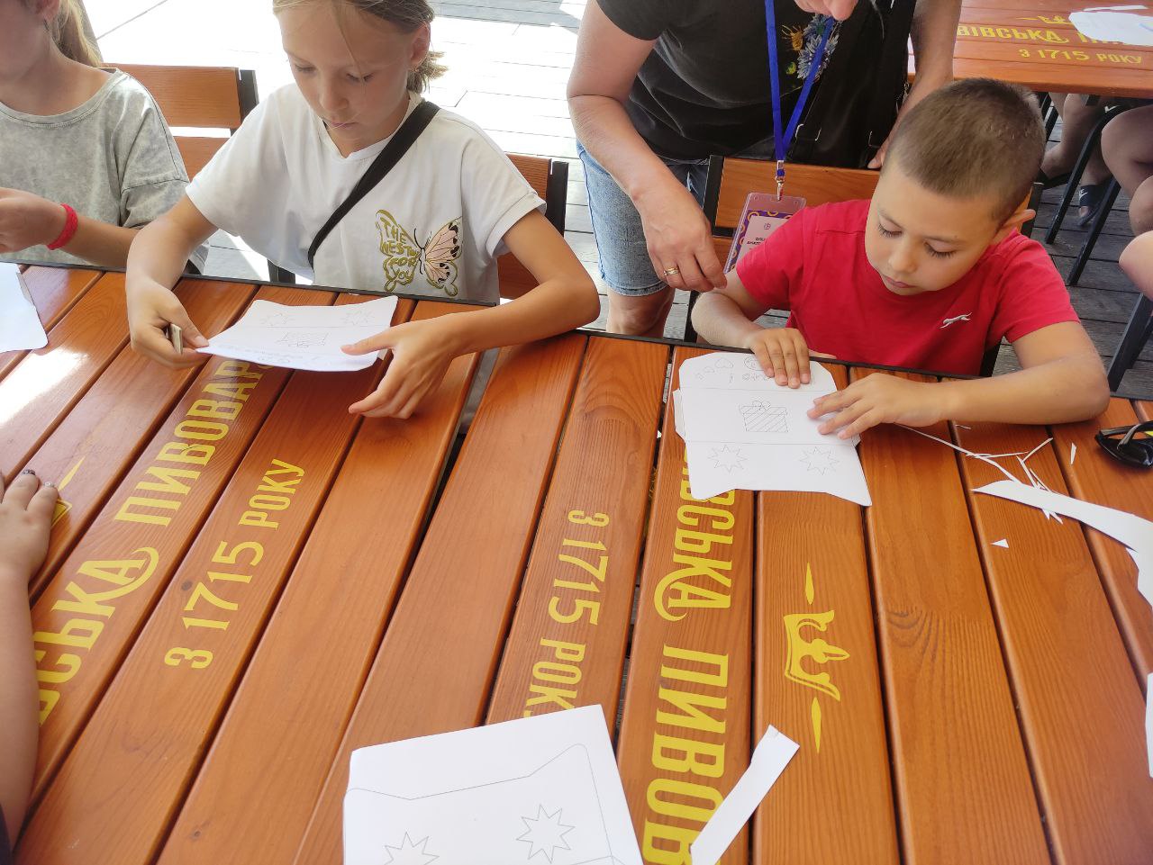 38 дітей віком 7-16 років з окупованих та прифронтових районів Запорізької області долучилися до творчості та спілкування. Разом ми виготовляли жовто-блакитне серце з паперу в техніці орігамі (Доманська М.І., Пророк Т.З.); вирізали сувенірний конверт або паперовий гаманець (Бельченко Р.І., Рацкевич Н.М.) та створювали вітальну листівку у стилі літньої флористики (Власюк І.М., Гайдаченко Л.П.).