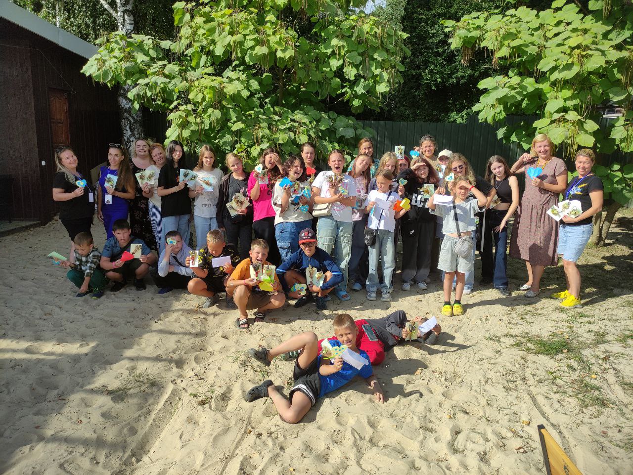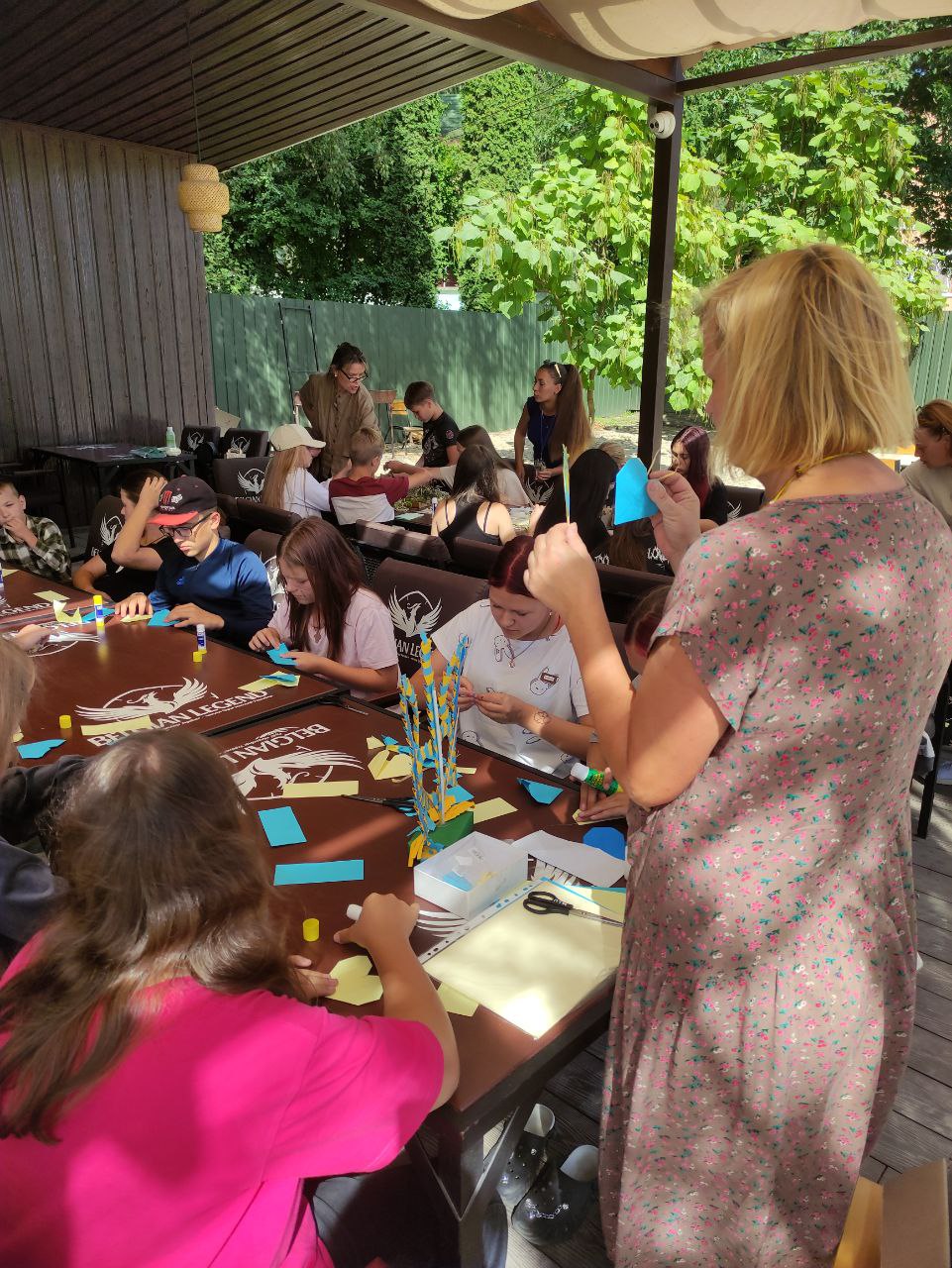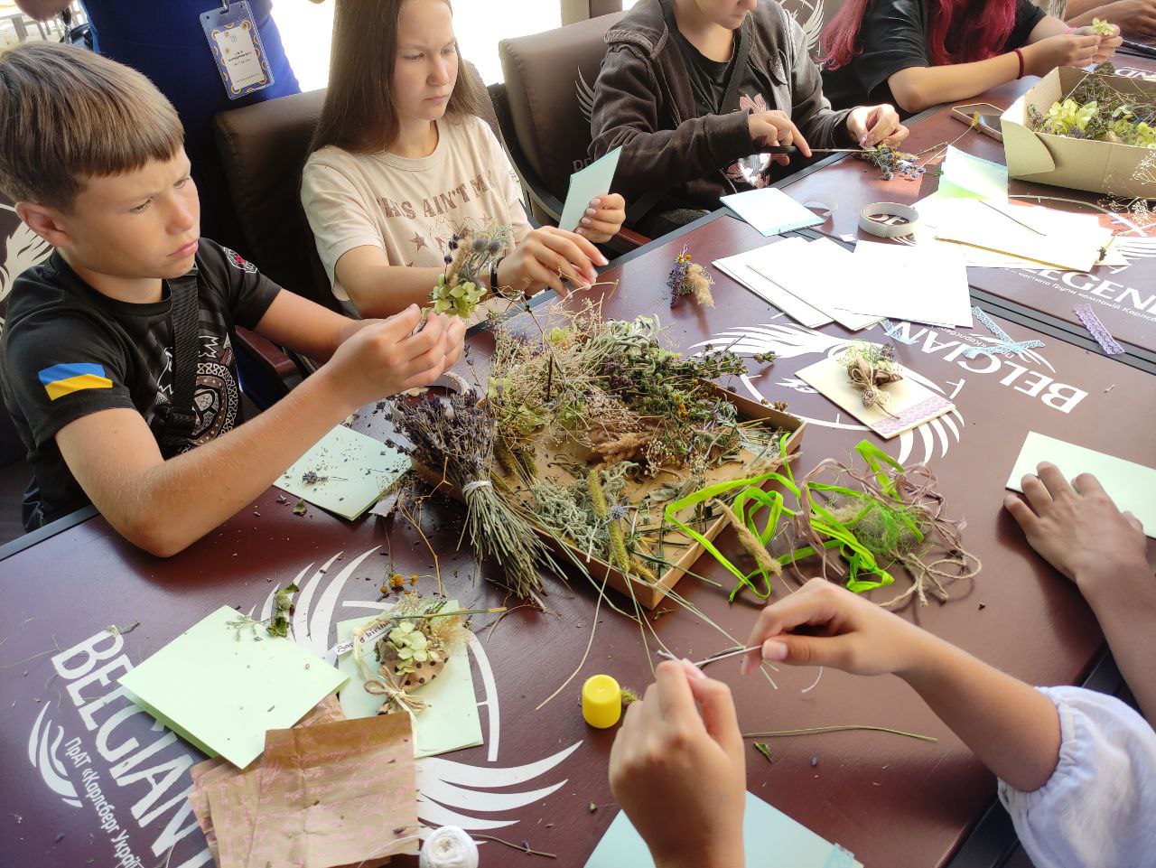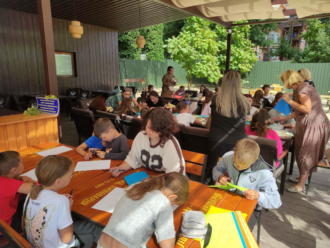 38 дітей віком 7-16 років з окупованих та прифронтових районів Запорізької області долучилися до творчості та спілкування. Разом ми виготовляли жовто-блакитне серце з паперу в техніці орігамі (Доманська М.І., Пророк Т.З.); вирізали сувенірний конверт або паперовий гаманець (Бельченко Р.І., Рацкевич Н.М.) та створювали вітальну листівку у стилі літньої флористики (Власюк І.М., Гайдаченко Л.П.).