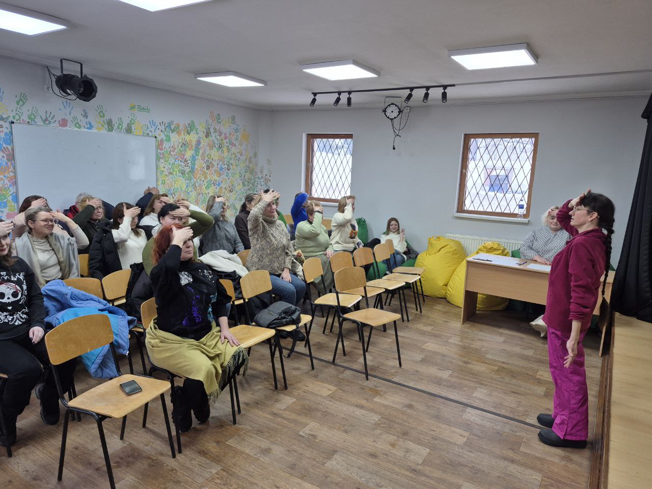 Для педагогів відбулося мінізаняття з вправ для очей, шиї та плечей із самомасажем, яке провела Тетяна Коташевська— юристка за освітою, фрілансерка-журналістка, членкиня НСЖУ та практикиня йоги з багаторічним досвідом. Після заняття педагоги отримали комплекс вправ для щоденного використання з метою зниження напруги та підтримки фізичного й емоційного ресурсу.