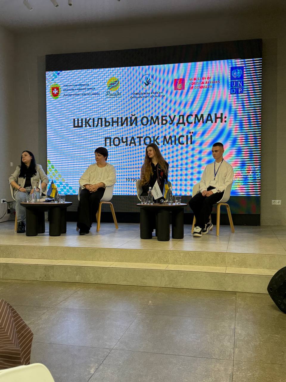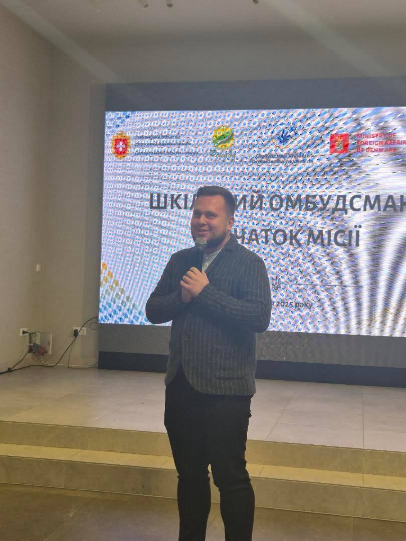 Від нашого закладу участь у заході взяв СТЕПАНОВ Назар, заступник директора з навчально-методичної роботи, який виступив спікером та поділився практичними напрацюваннями щодо розвитку лідерства й ефективної діяльності шкільних омбудсманів.