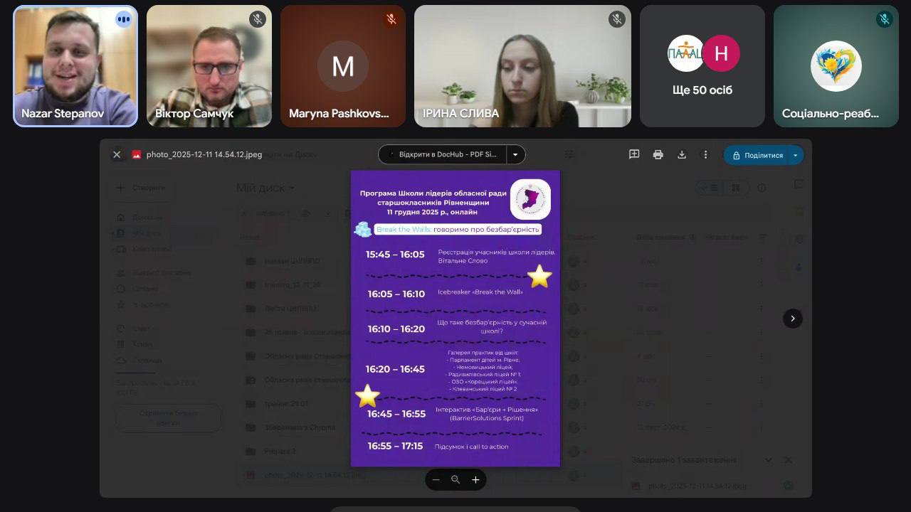Відбулася чергова зустріч Школи лідерів обласної ради старшокласників Рівненщини, присвячена одній із найважливіших тем сучасної освіти – створенню безбар’єрного середовища в школах та громадах області.